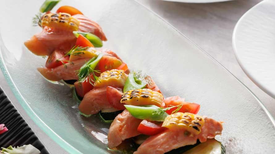 福地鶏やふくいポーク、福井サーモン、とみつ金時など、土地の恵みをさまざまな一皿でご用意。