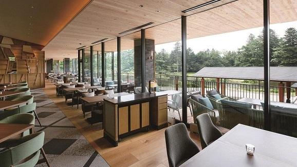 レストラン内に入ってすぐ右側にあるラウンジエリアでは、ケーキやジェラート、軽食などの充実したメニューをご用意しております。軽井沢の自然を見ながら、ほっと一息つけるティータイムはいかがですか?ケーキのテイクアウトも可能です。