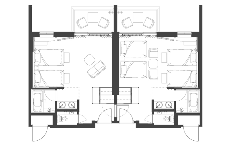 トランドルベッドのご利用で最大4名さまのご滞在や一部コネクティングルームとしてご利用でき、お部屋でゆっくり過ごしたい3世代旅行やワーケーション利用に最適です。