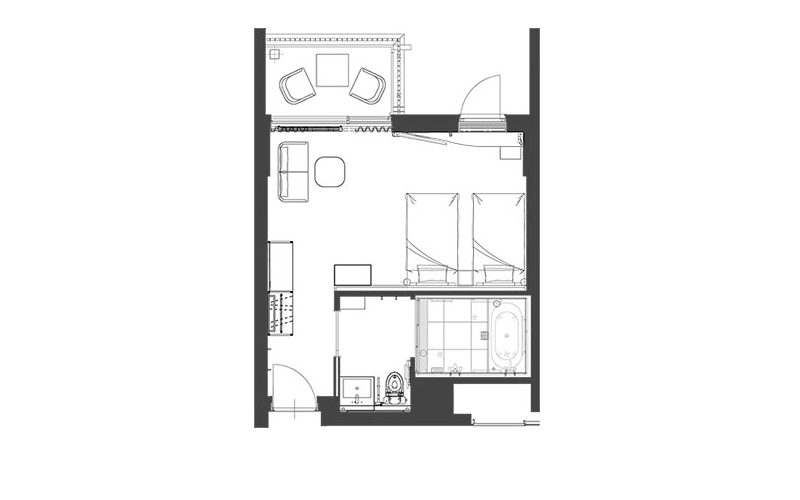 | 面積 | 客室:39.0㎡、テラス(バルコニー):6.0㎡ |