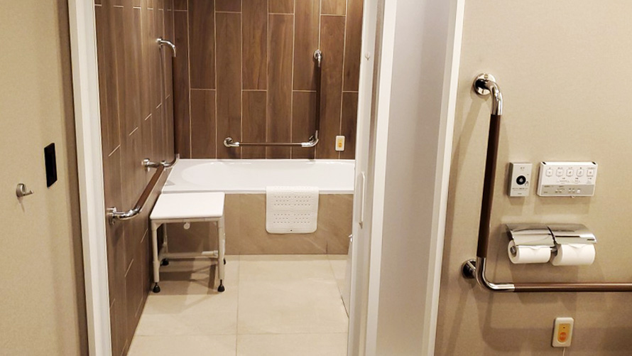 段差が少ないバリアフリー仕様のお部屋。窓の外にはテラスがあり、お部屋にいながらも軽井沢の自然を満喫いただけます。
