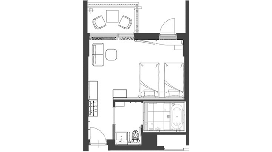 | 面積 | 客室:39.0㎡、テラス(バルコニー)6.0㎡ |