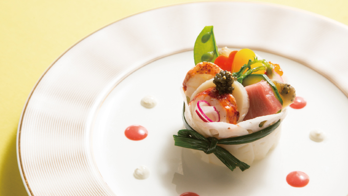 おふたりがゲスト一人ひとりの顔を思い浮かべながらフルコースを組み立てていただけるよう、プリフィックスキュイジーヌスタイルでお料理をご用意いたします。