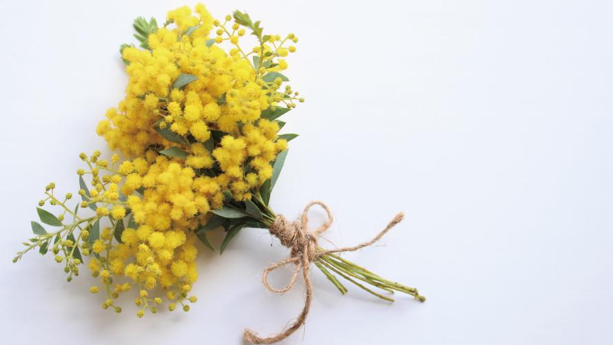 春を告げるミモザに彩られた会場コーディネイトやウェルカムアイテム展示のほか、プチギフトもプレゼント。