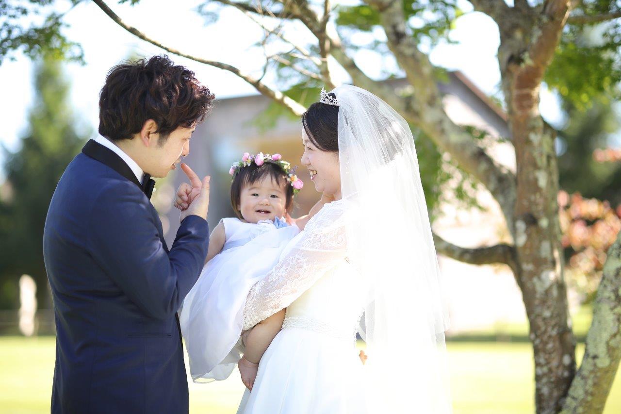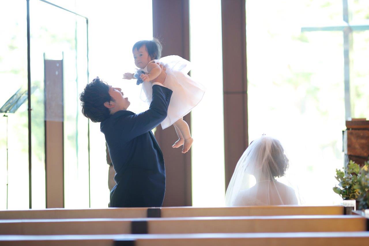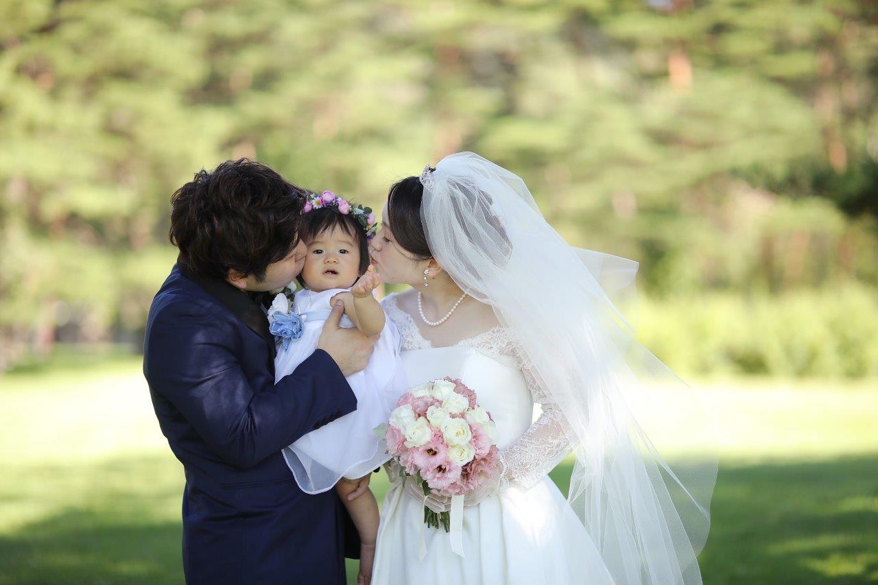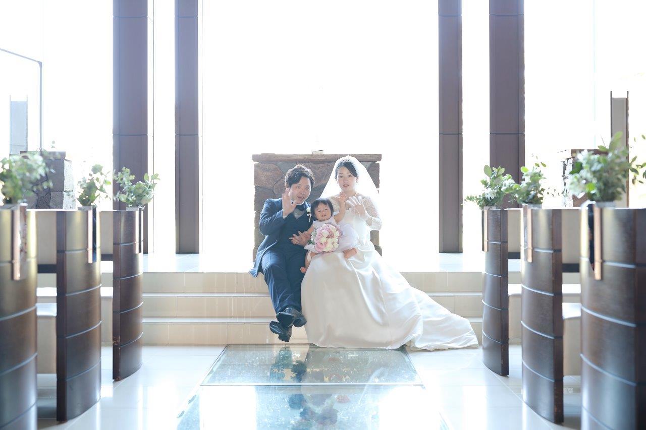 挙式前のロケーションフォト撮影もお子さまと一緒にしっかり撮影。