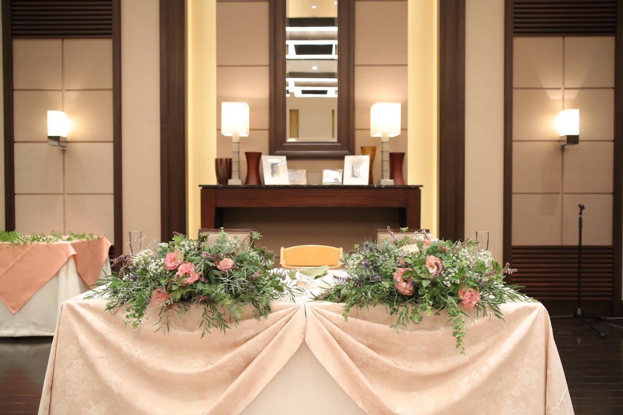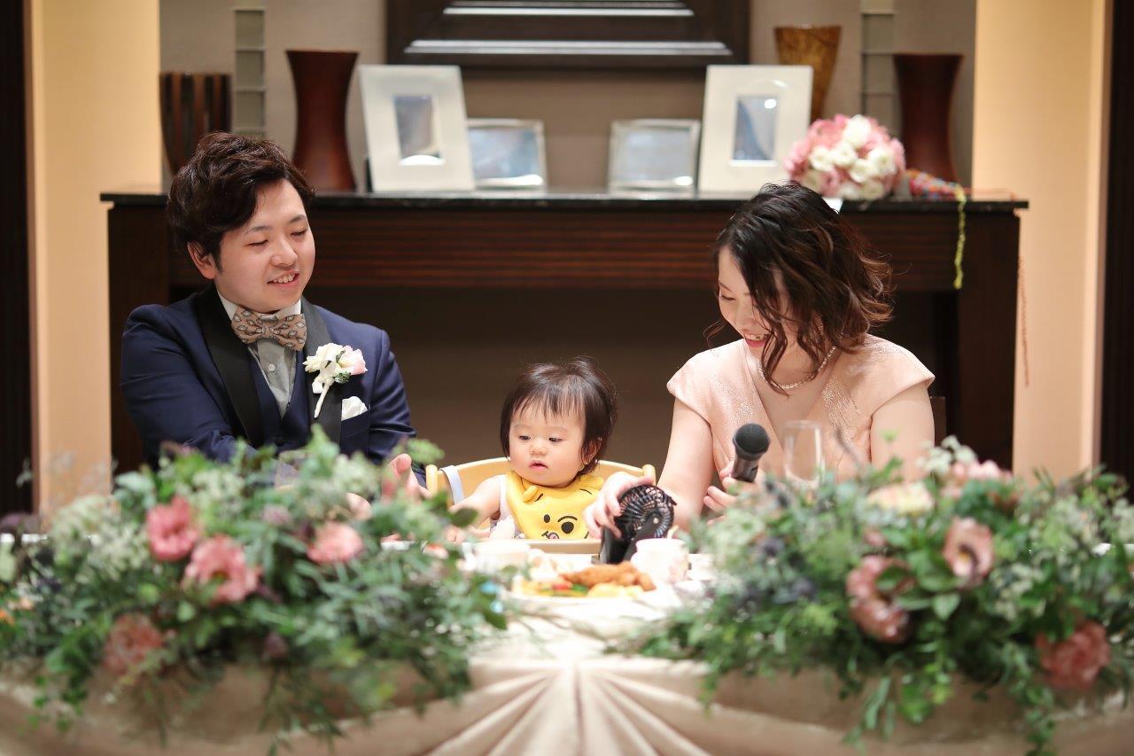 お子さまの顔が見えるよう、メインテーブルのフラワーコーディネイトも中央を愛娘の高さに調整。