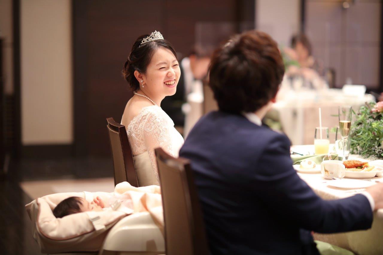 メインテーブルの真ん中でパパとママに挟まれてすやすや眠る娘ちゃん