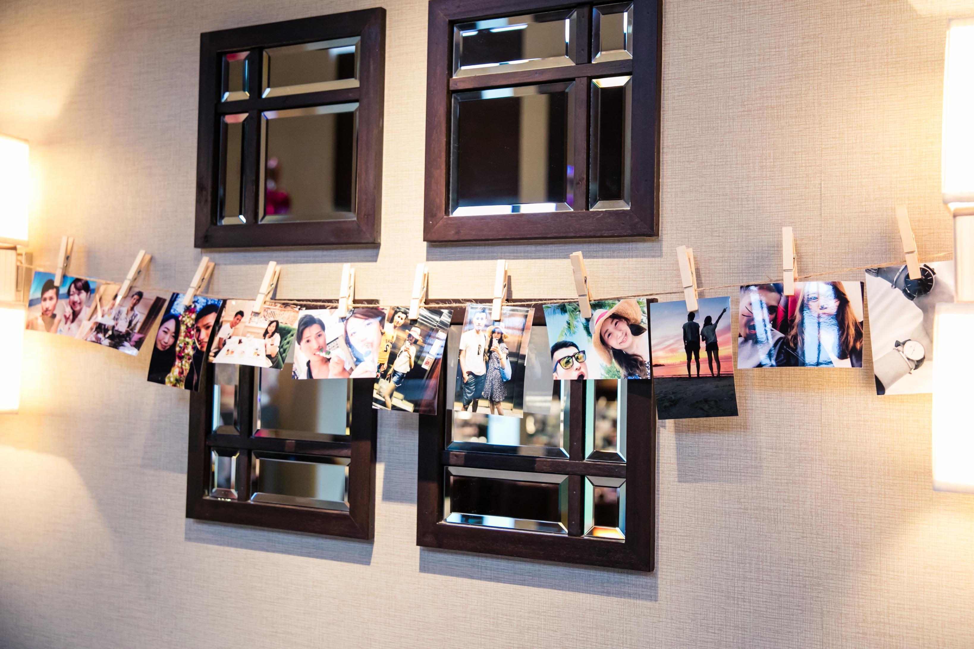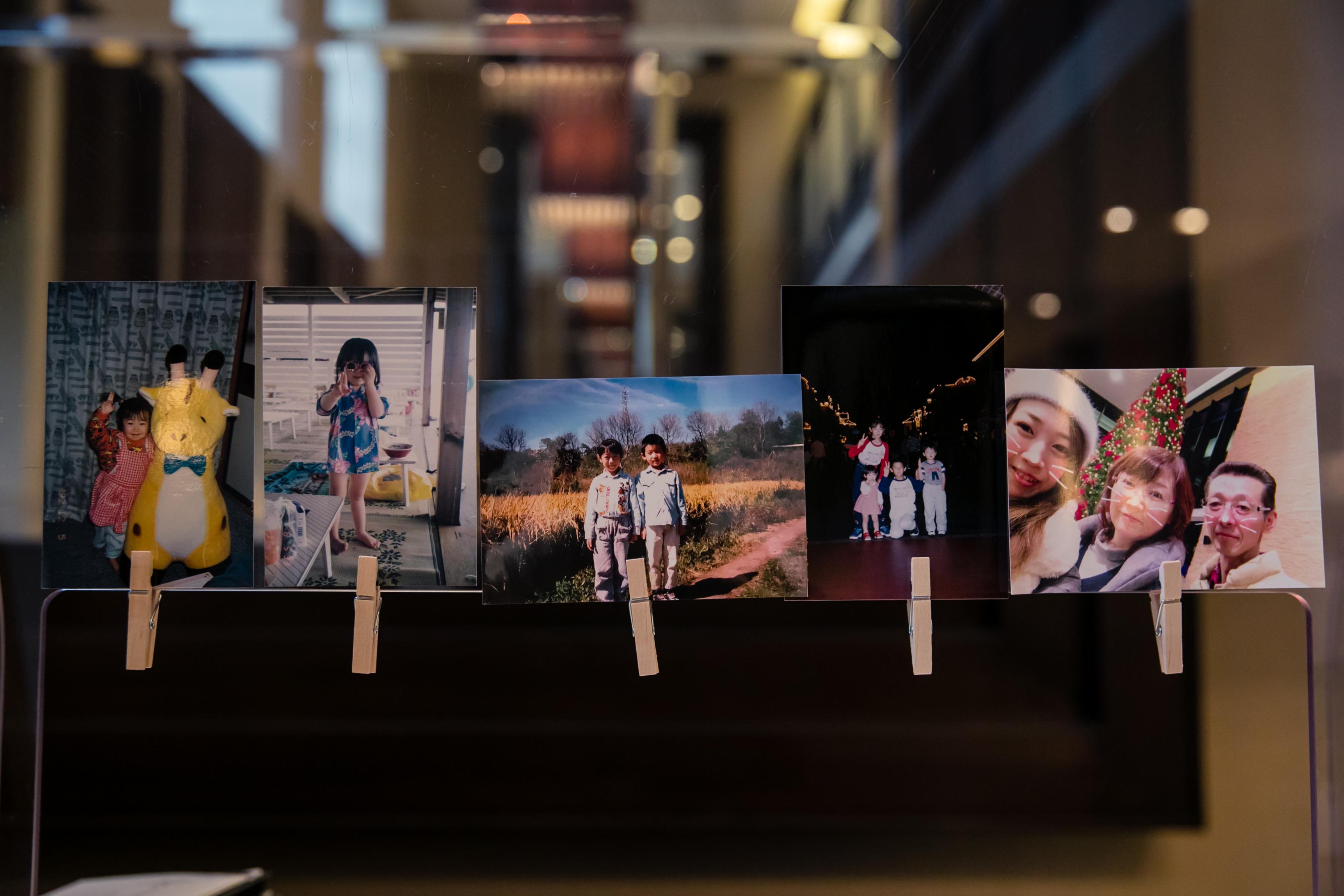 ウェルカムスペースのいたるところに、ふたりだけではなく家族やゲストとの思い出の写真を飾ってまるでギャラリーのように。