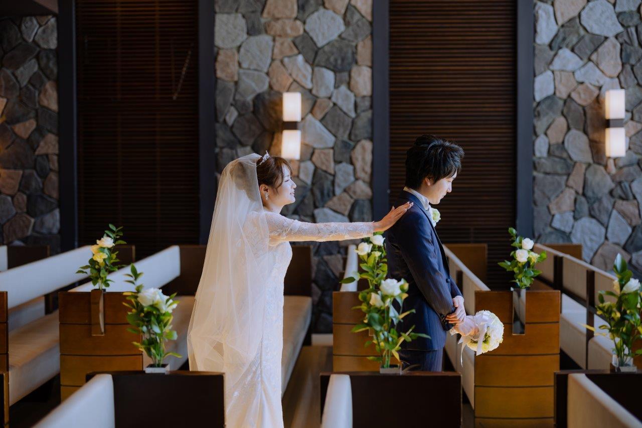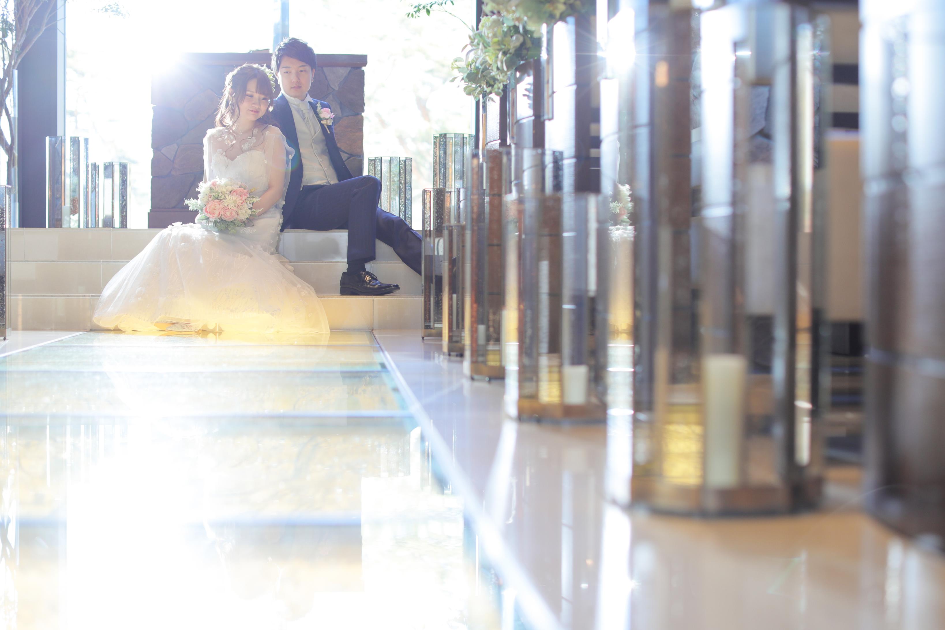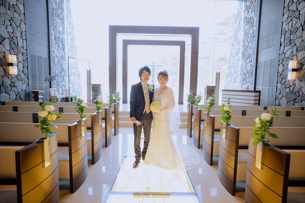 チャペルのガラスのバージンロードを見てここで挙げたいと思った。