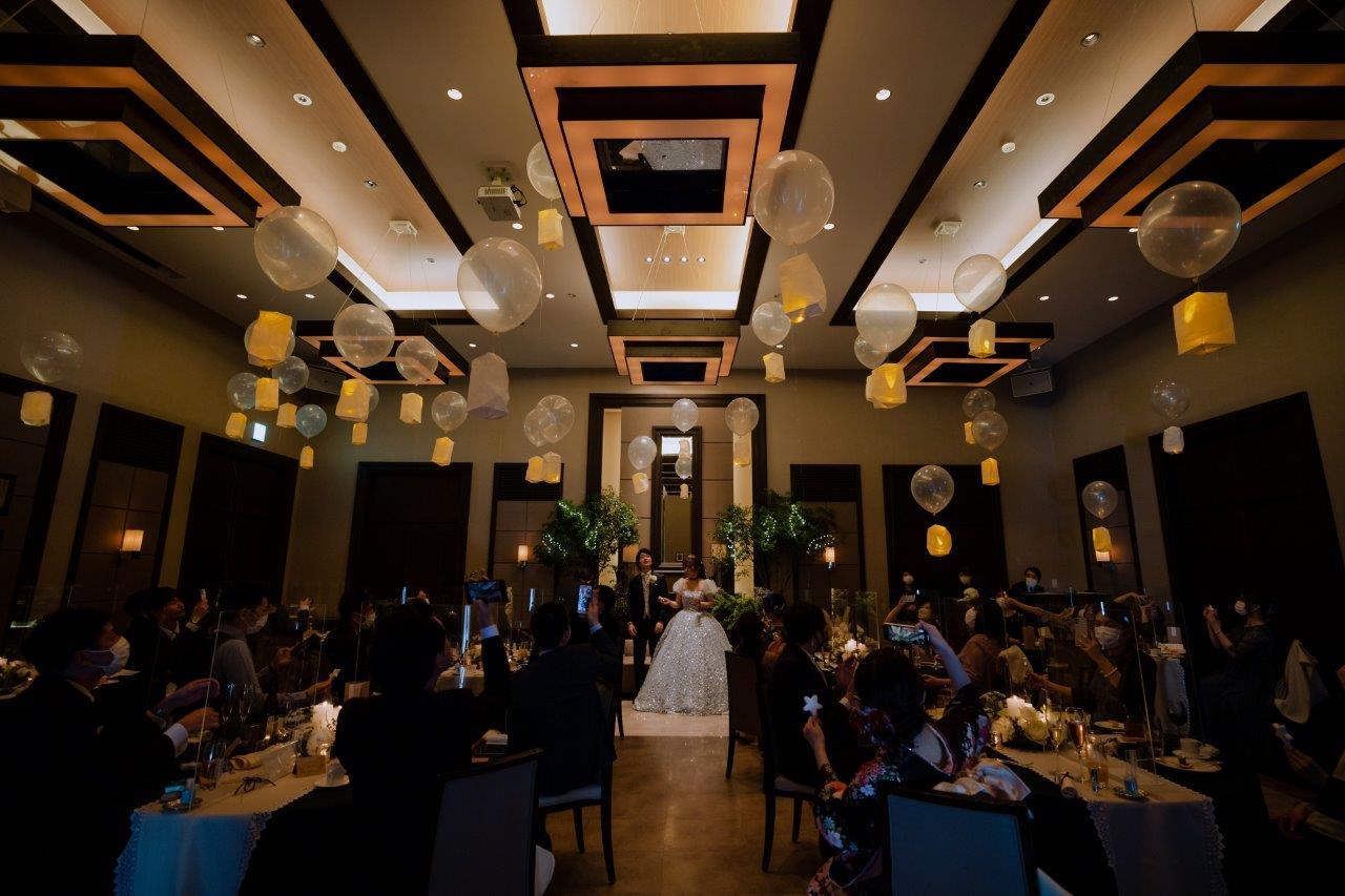 冬なので室内でできる演出をプランナーさんと考えてランタンバルーンをしました。とても綺麗で楽しかったです。