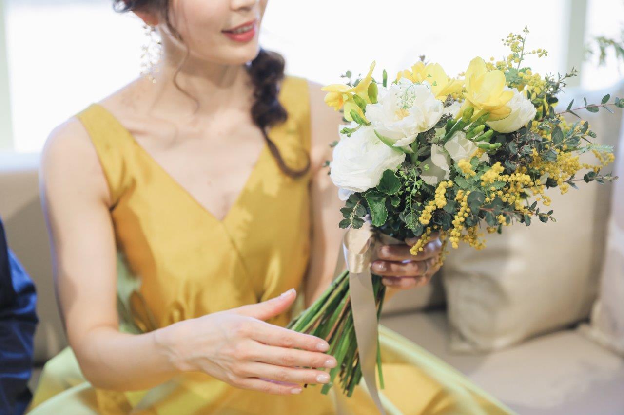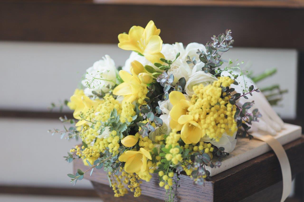 時期的にもちょうど良かったし、個人的にもミモザが好きなのでたくさん使ってもらいました。