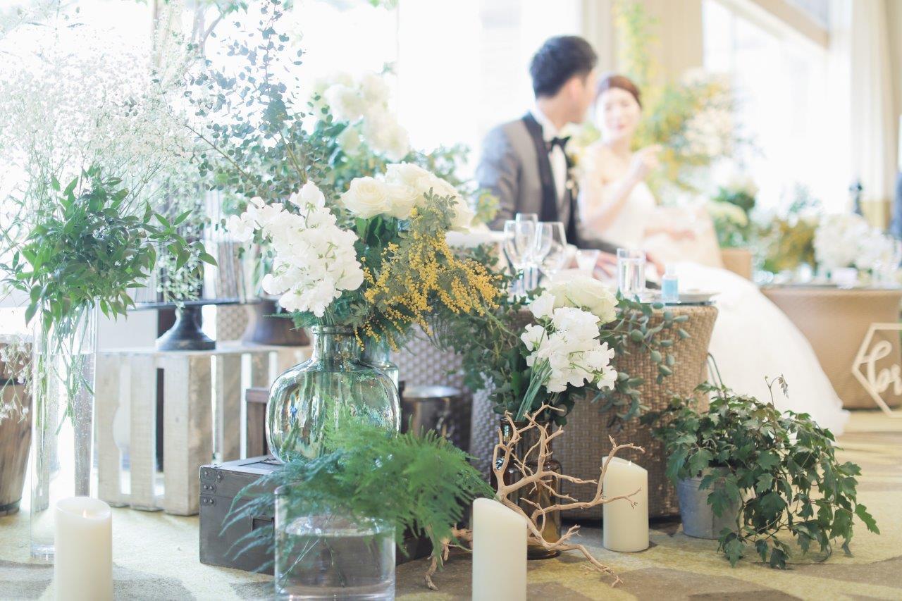 ・披露宴からは装花やブーケ、ペーパーアイテムにミモザを取り入れました。