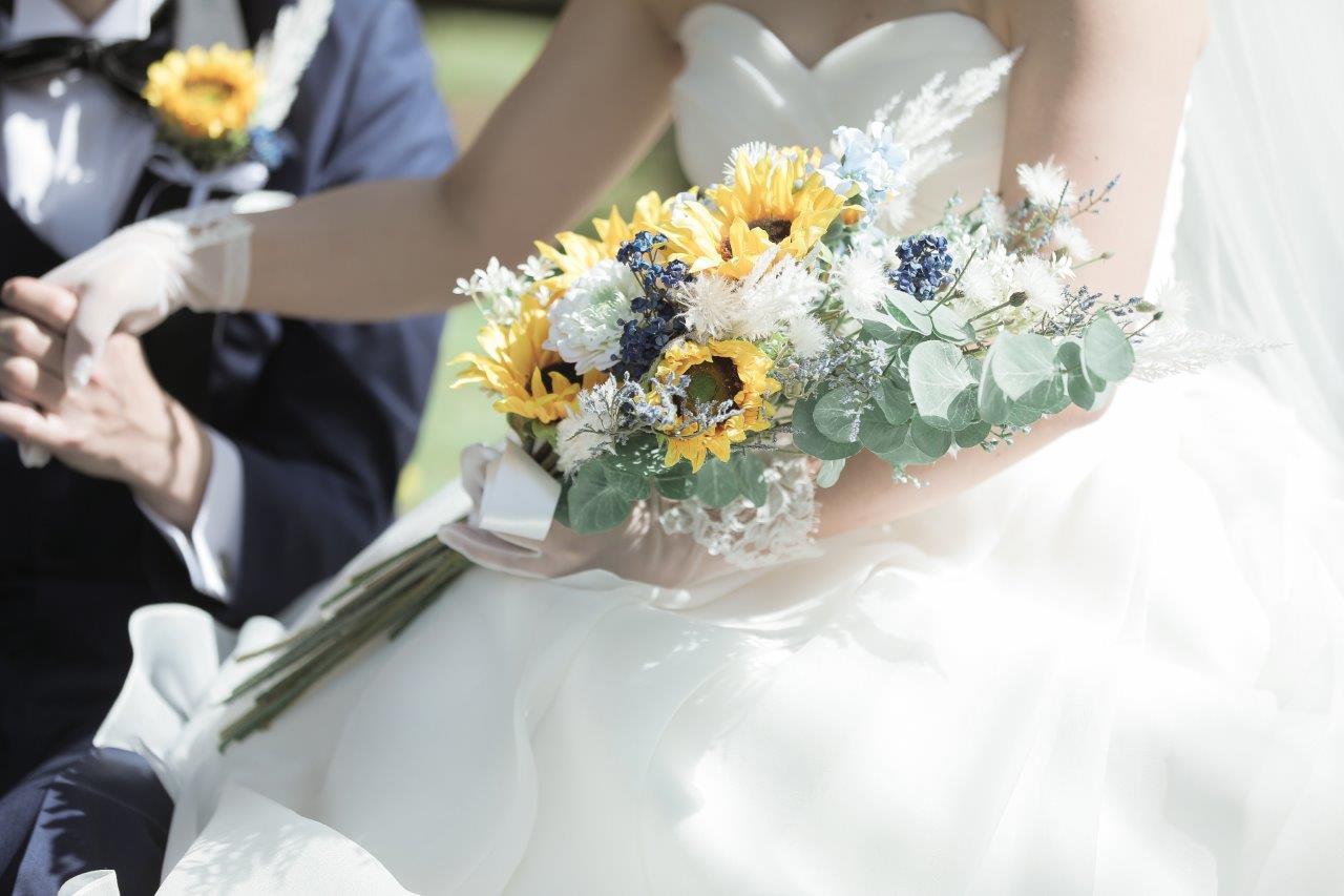 2人の共通の趣味である登山と新婦が好きなひまわりをテーマにし、新婦友人が作成してくれたブーケとリングピローと共に会場の雰囲気を合わせて行いました。