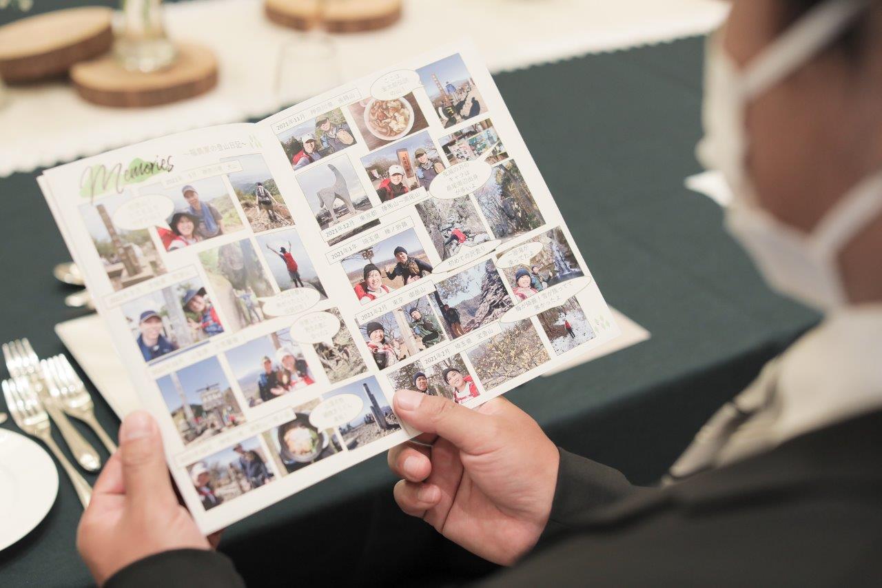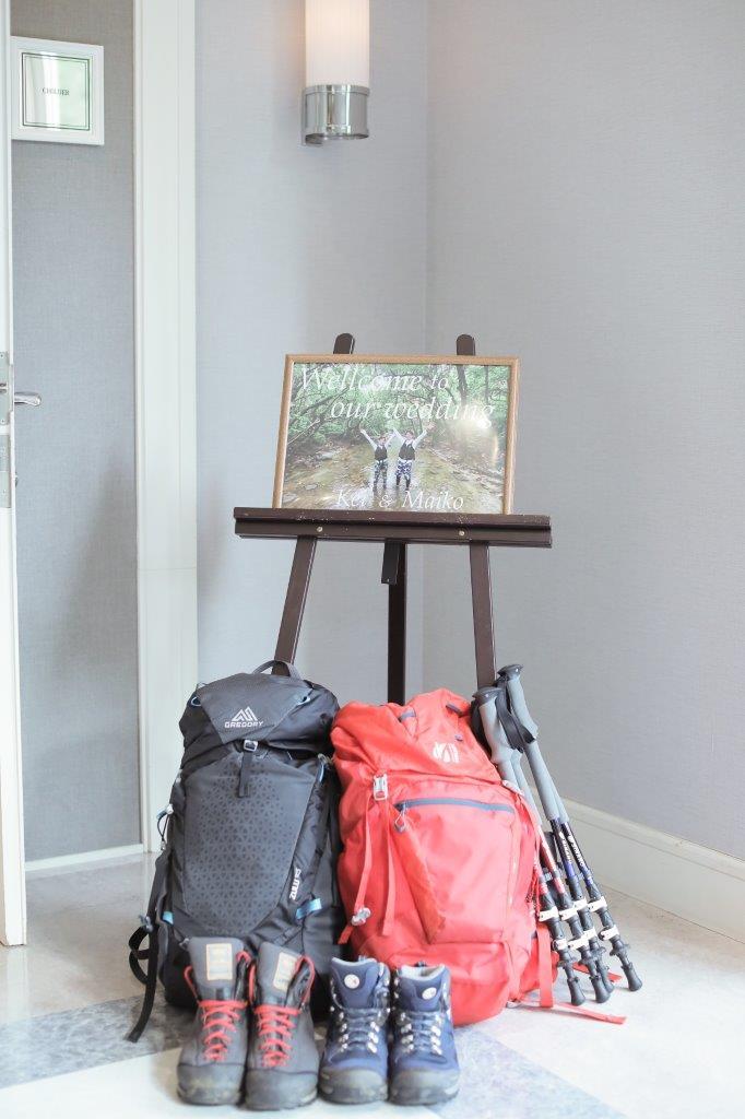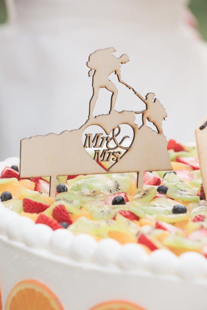 山好きが伝わるようにケーキトッパーやウェルカムスペースを山っぽくしたり、席次表にも登山写真を載せて楽しんでもらえるようにしました。
