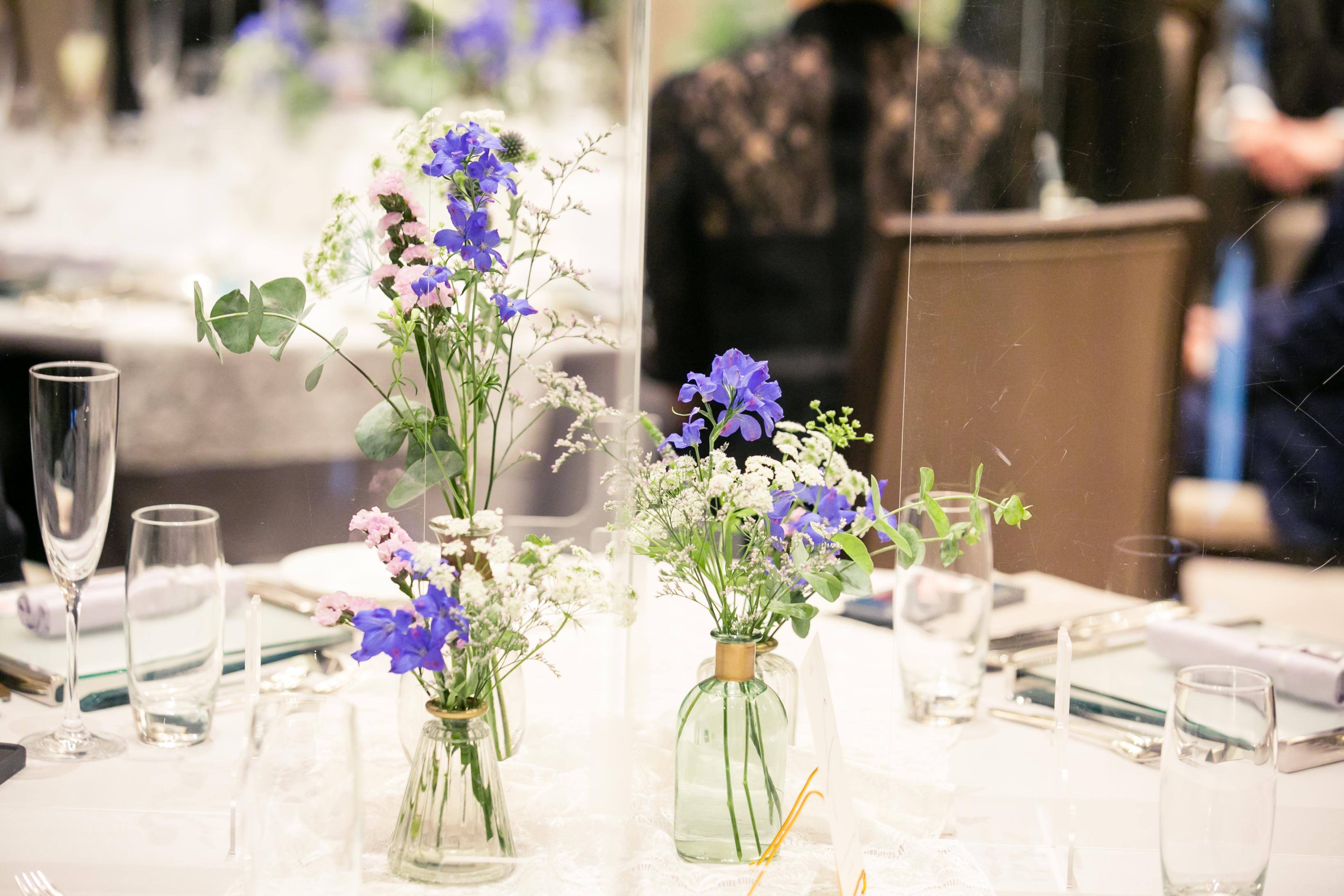パープルをテーマカラーにし、夏らしくブルーを取り入れ爽やかさを意識しました。