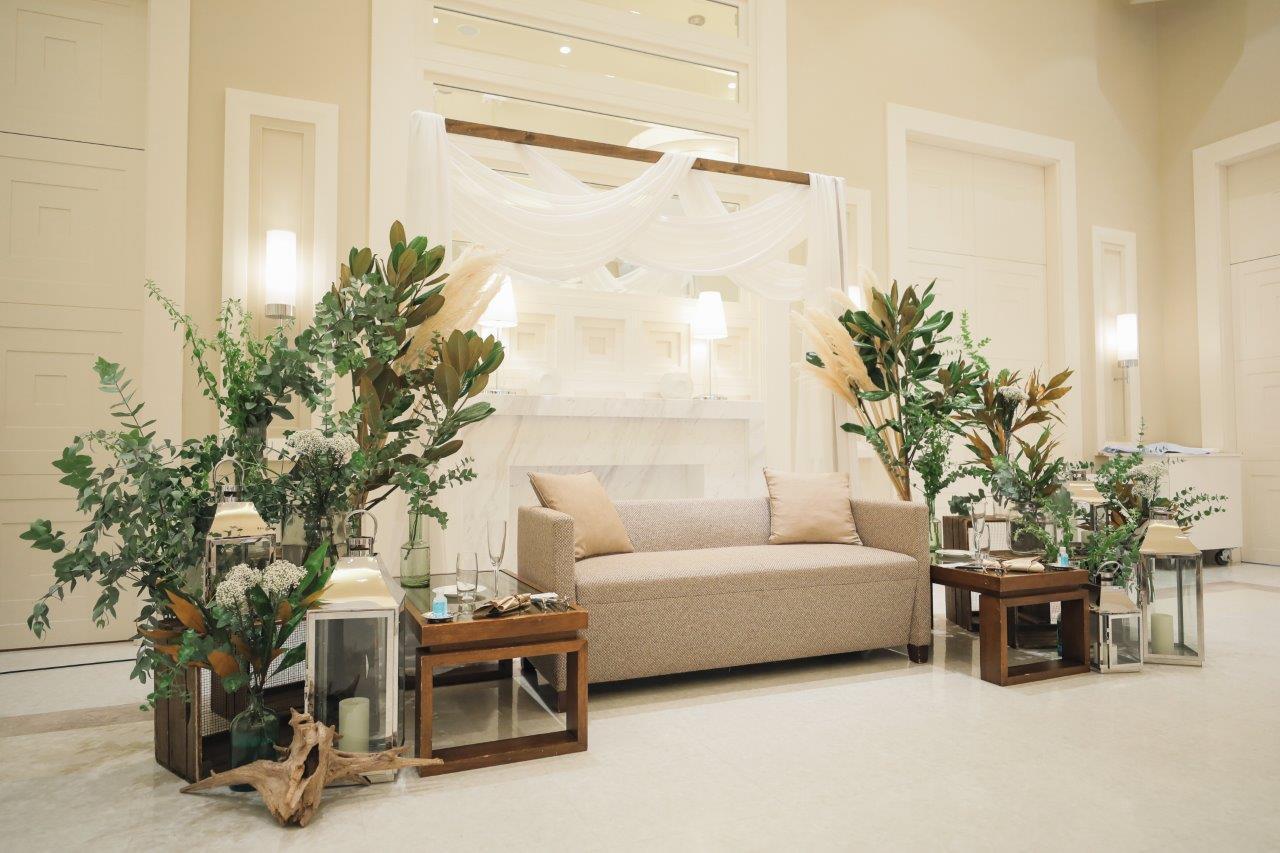 高砂をソファにし、ゲストとの仕切りをなくし目線が