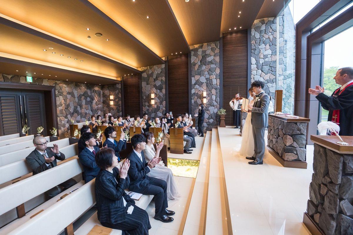 チャペルから外の景色が見えてとても明るく、軽井沢らしい自然を存分に感じられました。