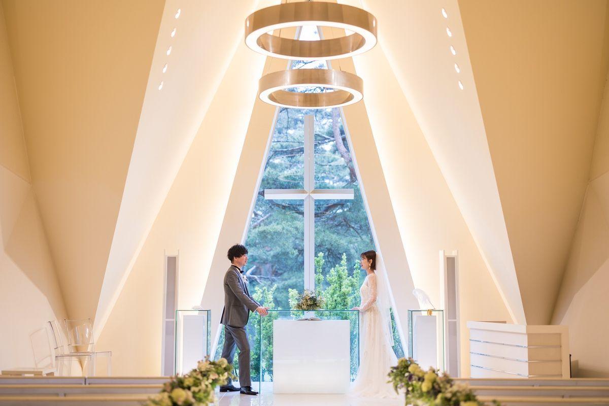祭壇の後ろが大きなガラス張りになっていて、1年を通してどの季節でも素敵な写真が残せると思います