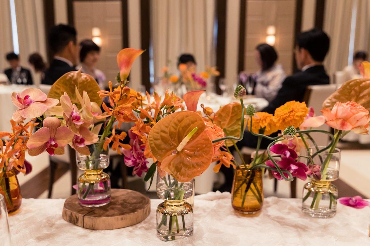 一番のこだわりは、色やテイストのテーマを決めて会場内の装飾・花・衣装・ヘアメイクに統一感を出したことです。InstagramやTikTokで、自分の好きな雰囲気のものを探し、真似して取り入れました。
