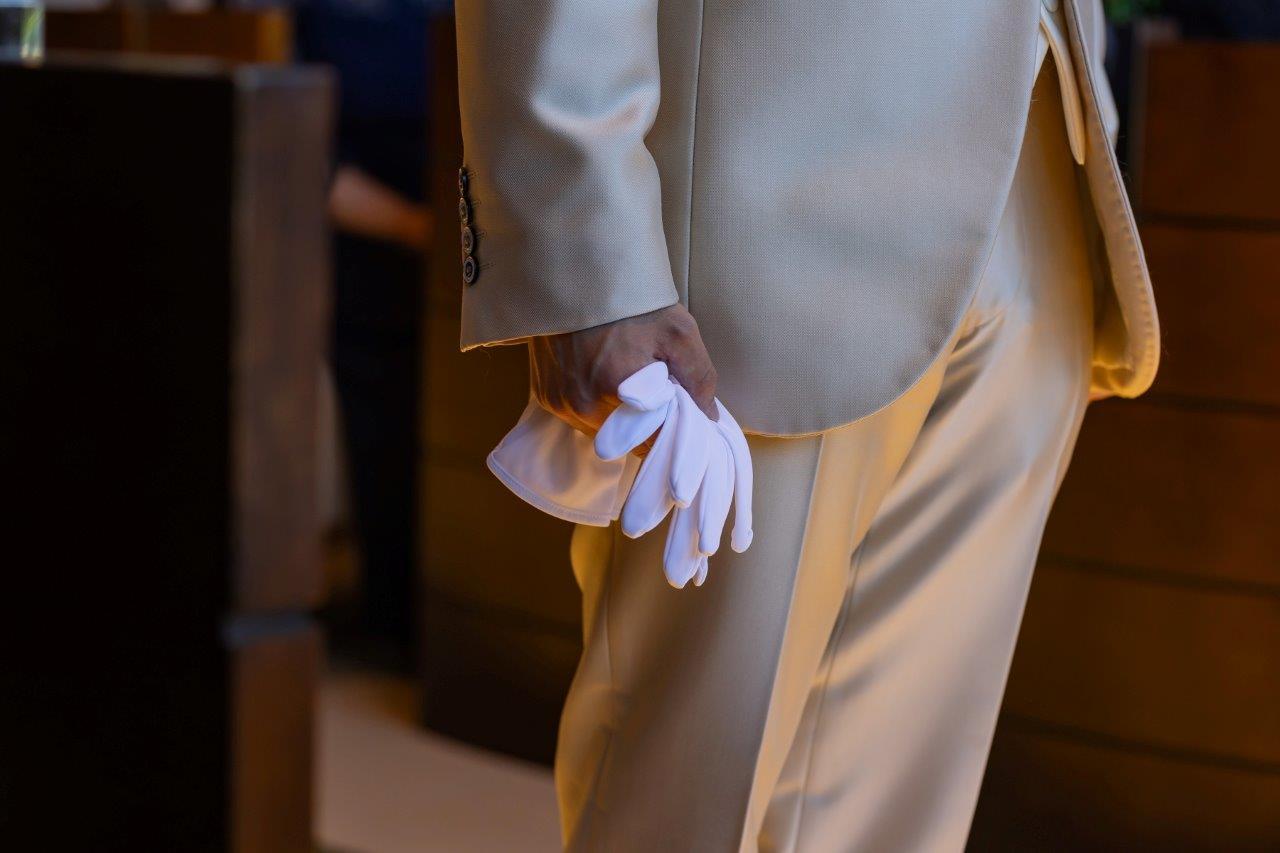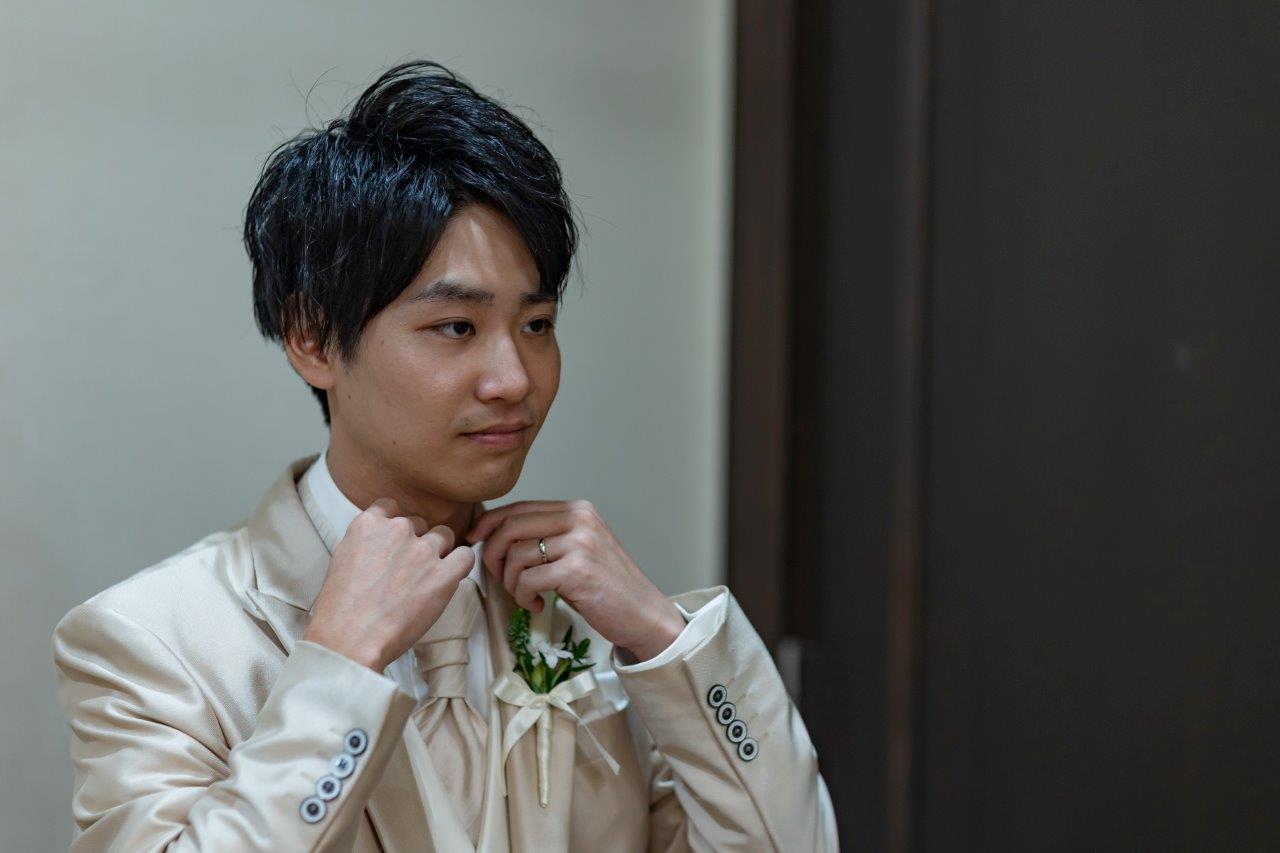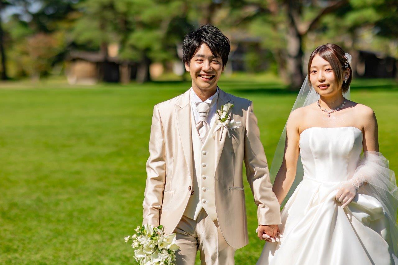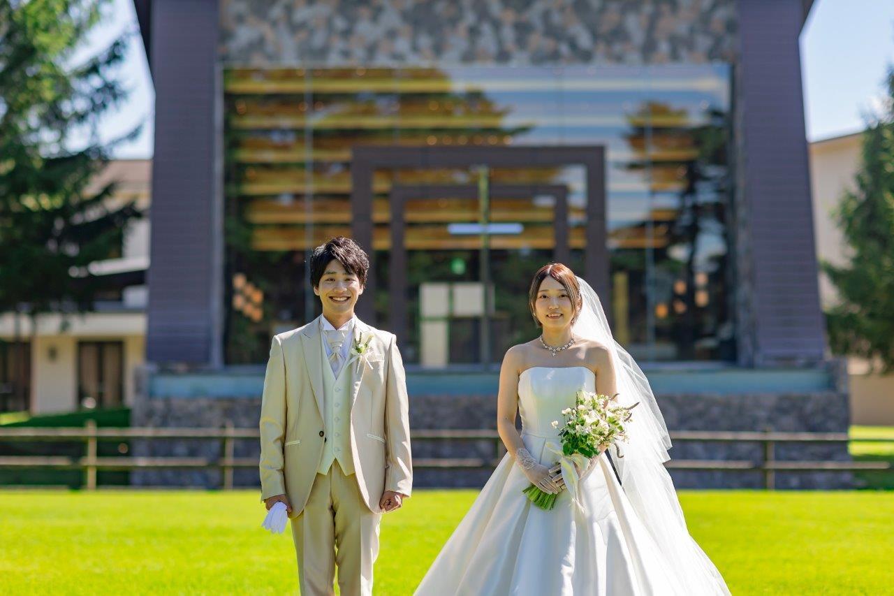 お互い派手なものが苦手なので、シンプルなタキシードとドレスにしました。地味すぎず、ゲストからも好評でした。