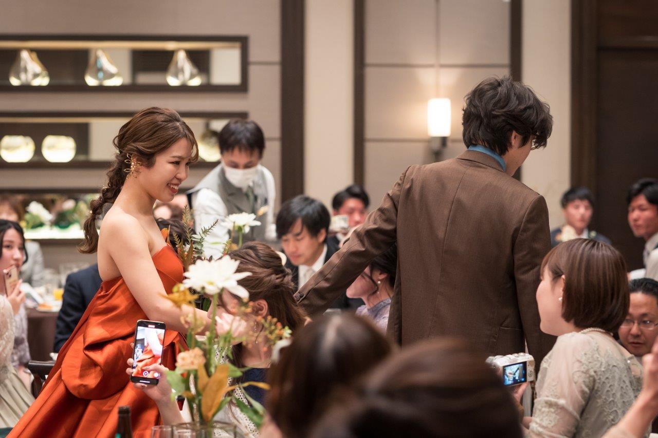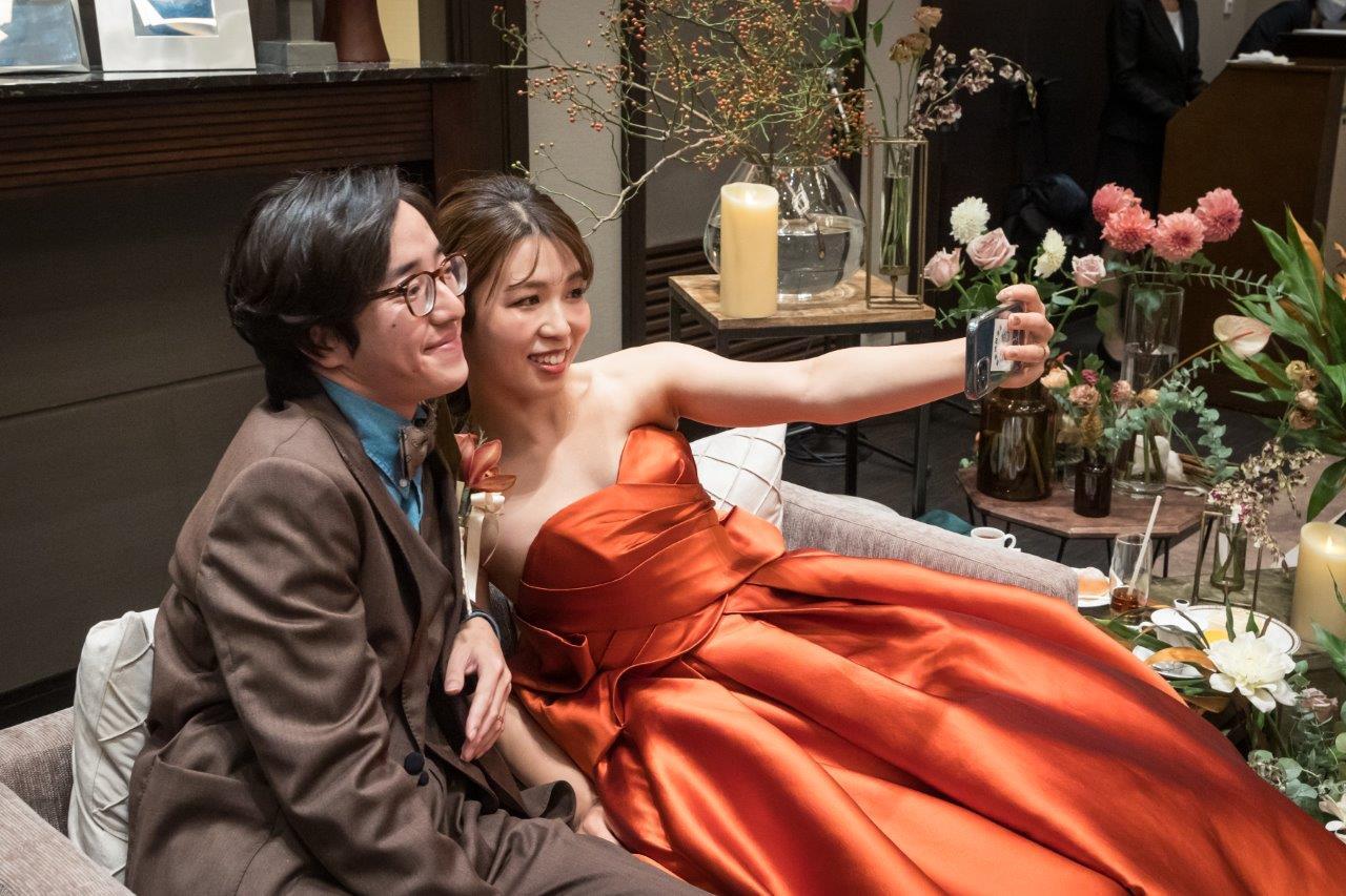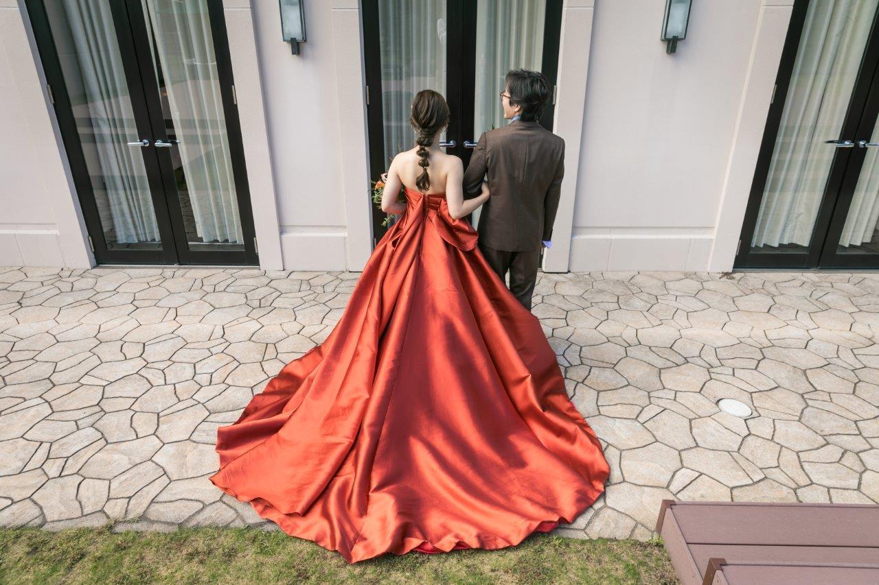 カラードレスは秋カラーにしたかったので、テラコッタカラーにすることは最初から決めていましたが、自分の肌にも骨格にも合うタイプのドレスが見つかったので周りからも大好評でした。ギリギリまで何度も試着しに行き、納得いくものが選べたので嬉しかったです。