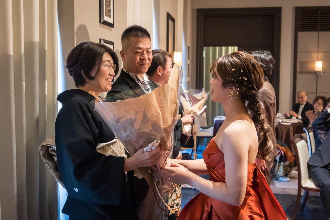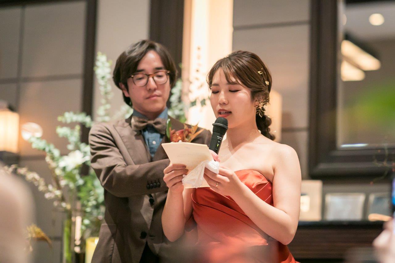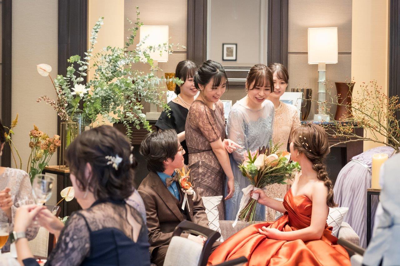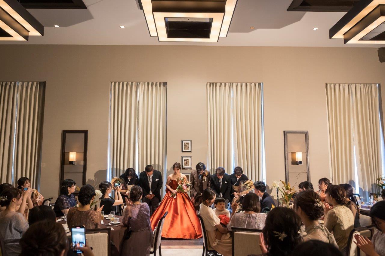 カラードレスは秋カラーにしたかったので、テラコッタカラーにすることは最初から決めていましたが、自分の肌にも骨格にも合うタイプのドレスが見つかったので周りからも大好評でした。ギリギリまで何度も試着しに行き、納得いくものが選べたので嬉しかったです。