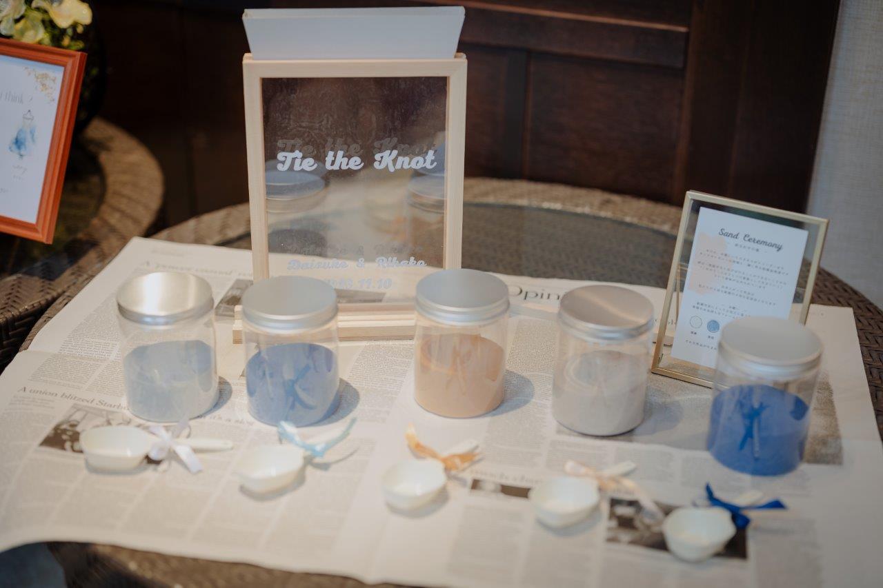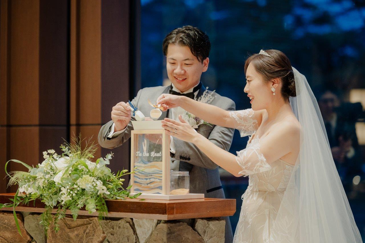 結婚証明書として、サンドセレモニーを行ったおふたり。