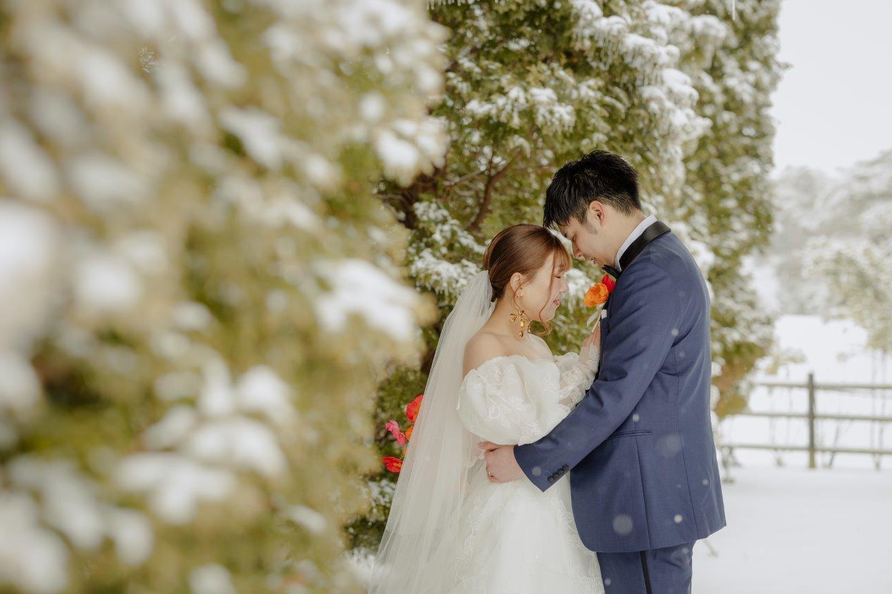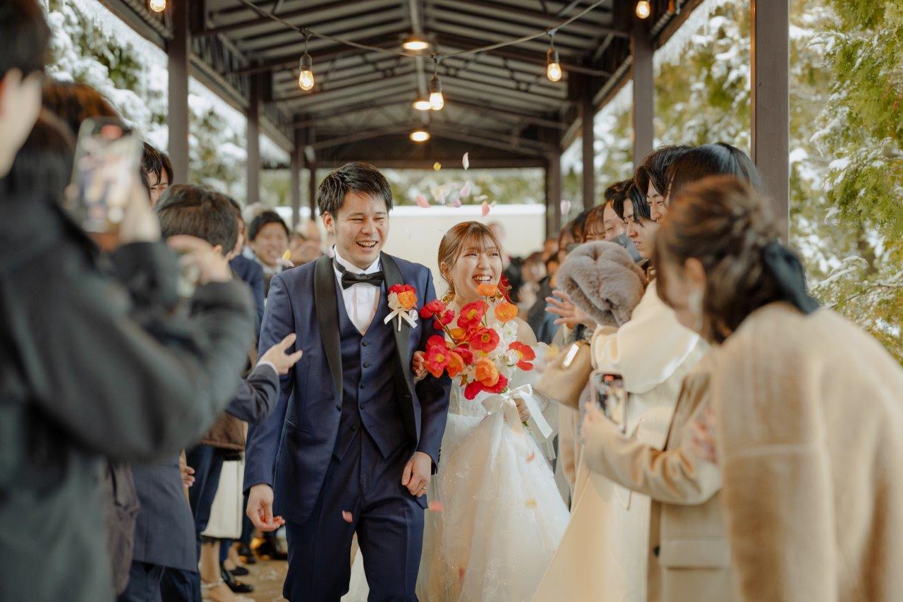 式当日はまさかの雪が降りsnow weddingになりました。とっても寒かったですが記憶に残る楽しい式になってよかったです。披露宴も盛り上がり、笑いあり涙ありの最高な式になりました。