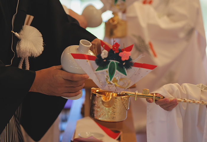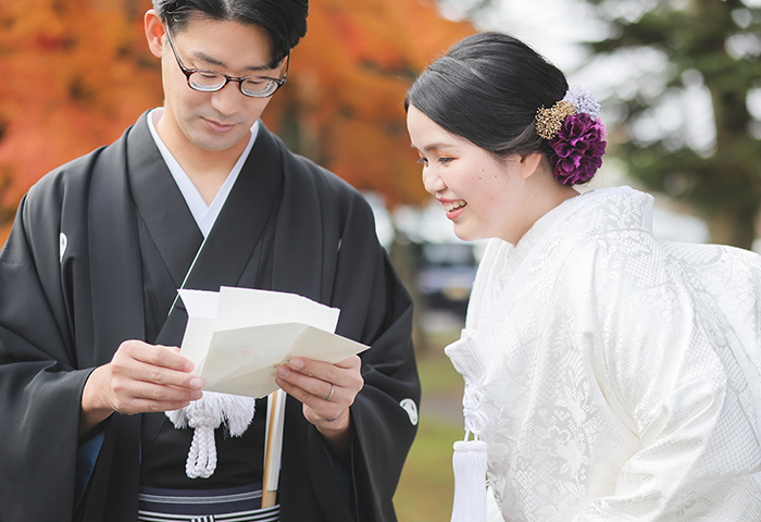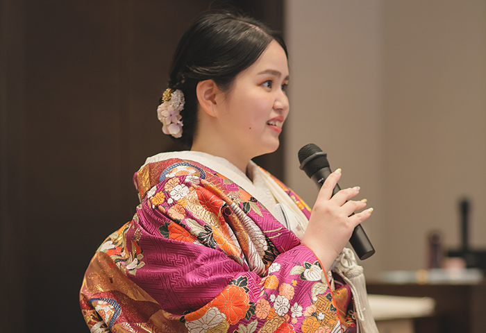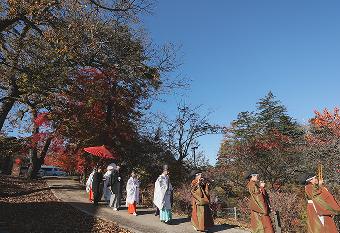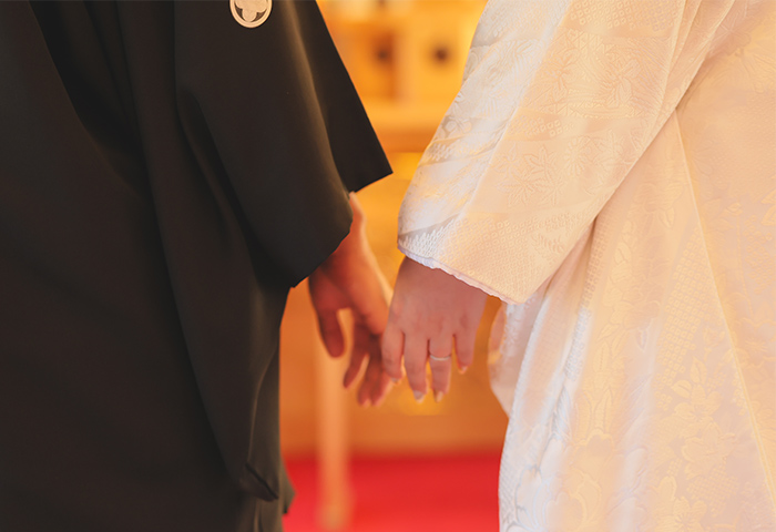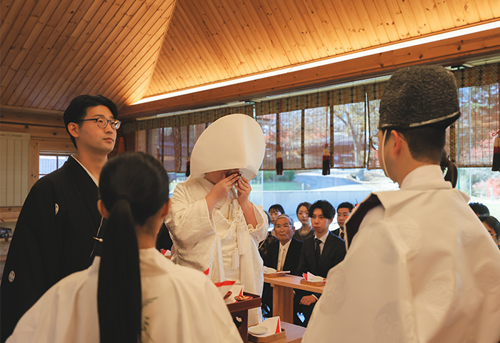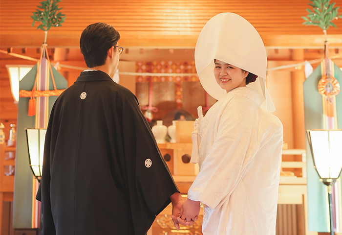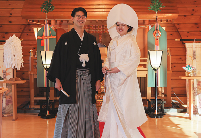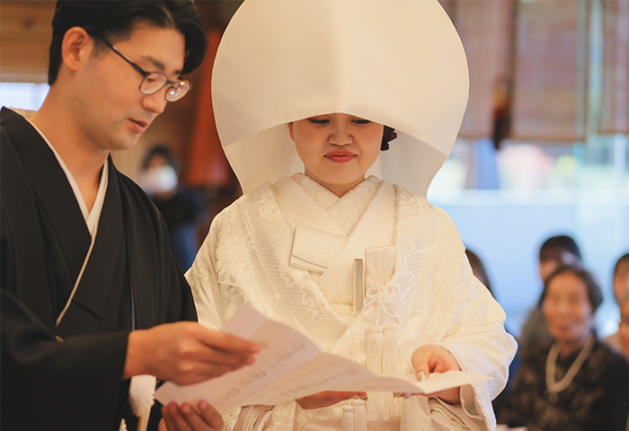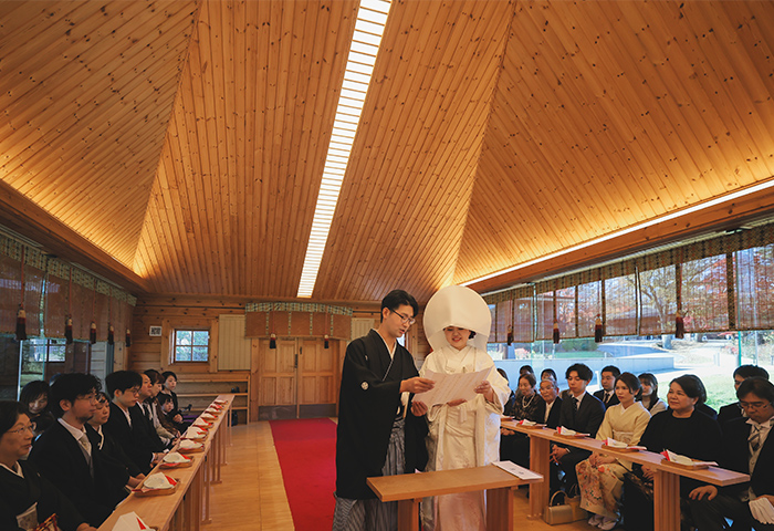 挙式は神前式で厳かに、披露宴は皆さんと楽しく過ごせるよう、雰囲気にメリハリをつけた一日にしました。