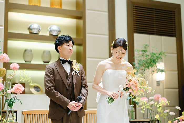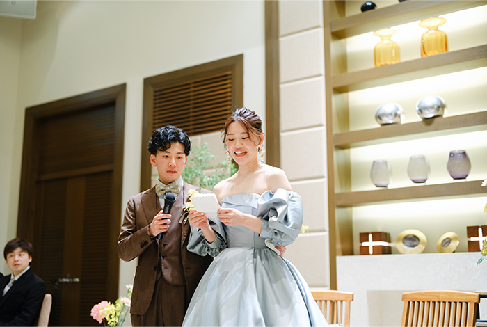 私たちはこれまで結婚式に出たことがなかったので、何も分からない状態からのスタートでした。でも、スタッフの皆さんが一つひとつ丁寧にサポートしてくださったおかげで、私たちらしい式をつくることができました。大切な人たちへ感謝の気持ちをしっかり届けることができ、笑顔にあふれた一日になりました。本当に、最高に幸せな時間でした。