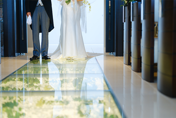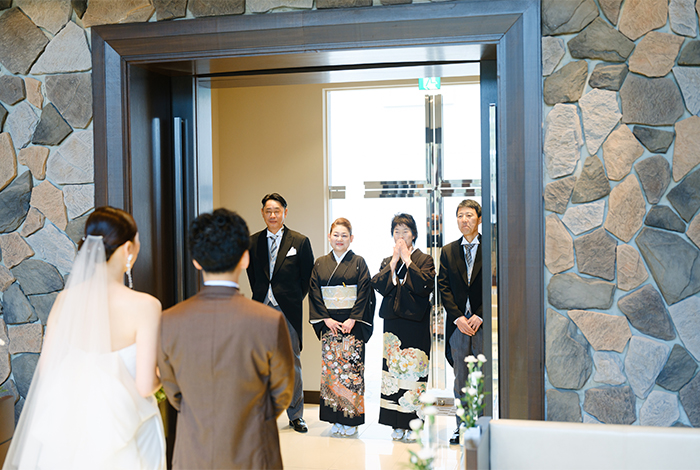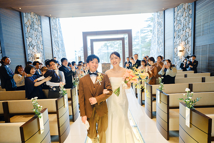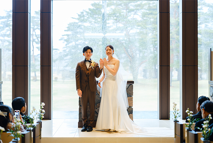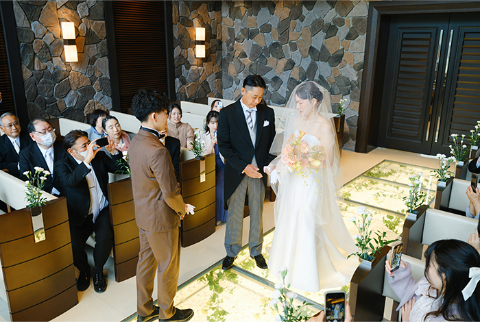 光が差し込むチャペルで、大切な人たちに見守られながらの挙式は、本当に特別な時間でした。