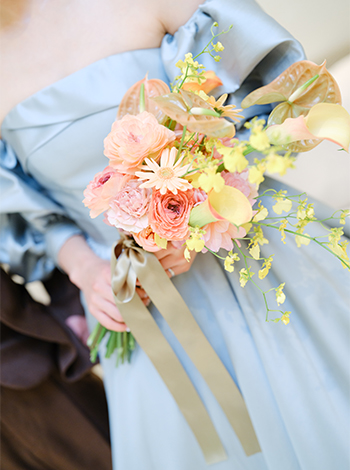 想像以上に素敵に仕上げていただき、大満足でした。カラードレスには、優しいグリーンを選び、春の訪れを感じるような装いに。