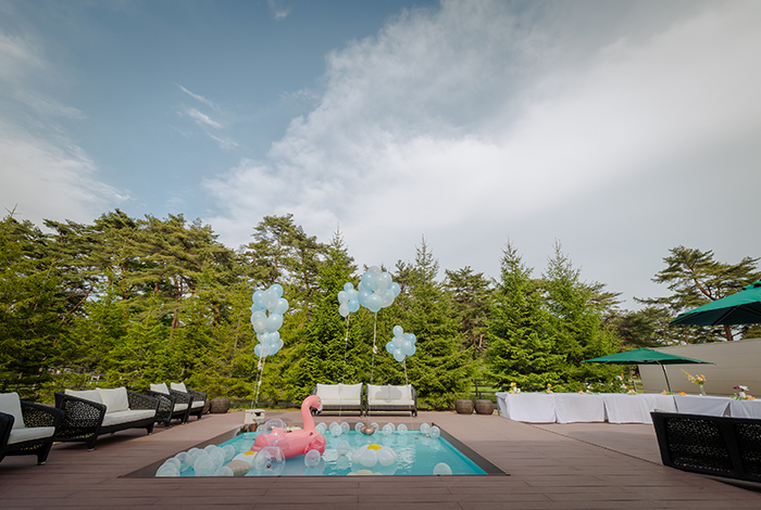 軽井沢の自然を感じられるガーデンウエディングと屋内を組み合わせたパーティーをイメージしました。