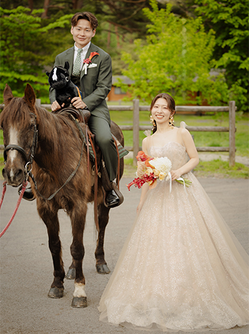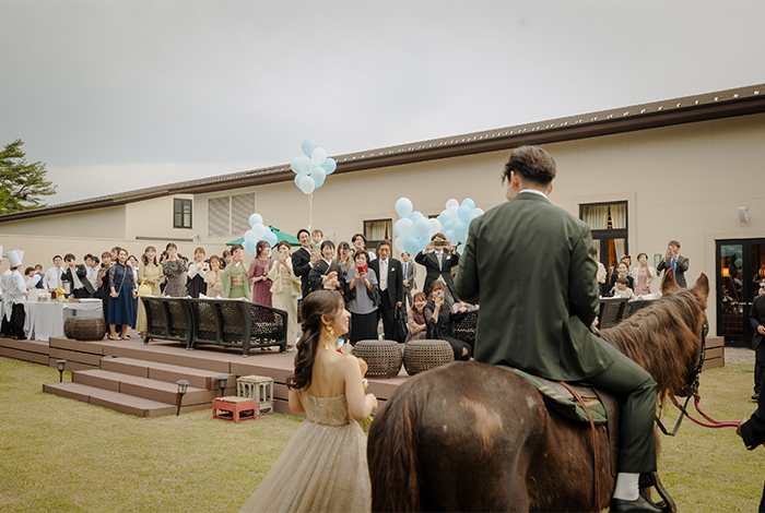 また、馬での入場という演出も取り入れました。これはゲストからも一番好評で、都内ではなかなかできない、軽井沢ならではの特別な演出になったと思います。
