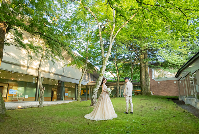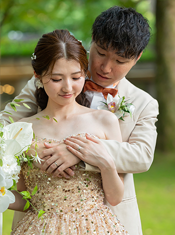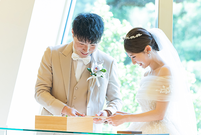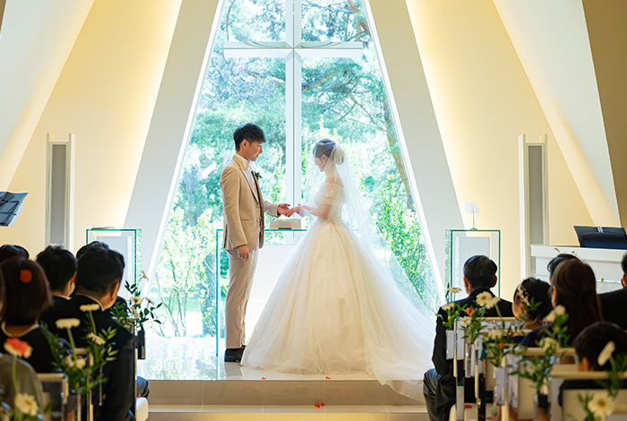 見学のときから「ここで誓いたい」と思えるほど、自然と調和した空間に惹かれました。また、披露宴会場が広く、私たちがやりたいと思っていた演出が叶えられそうだと感じたことも決め手でした。