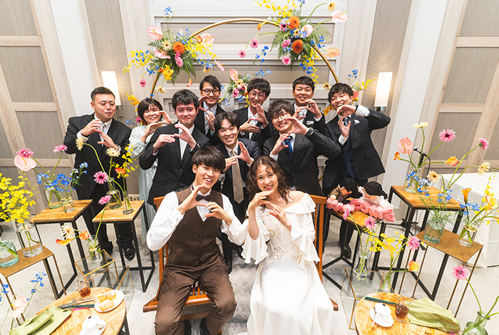 会場装花はカラフルにしてワクワク感やドキドキ感を大切にし、“普通とは違う結婚式”を意識しました。