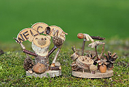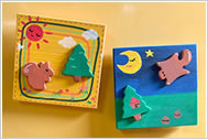 動物や昆虫のパーツを選び、小枝や木の実を使います。ムササビやキツネ、カマキリなど森で暮らすいきものたちの世界を作ってみましょう。