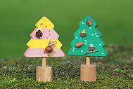 木工職人が手作りで仕上げたモミの木型に⾃由に⾊塗りをして、⽊の実をデコレーションしたら、世界で⼀つだけの森のおきもののできあがり!