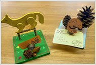 クリ、サクラなど森の木を使った創作工作体験です。あらかじめパーツ化された木端をカット・接着して創造力を発揮して作り上げます。