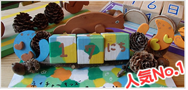 尾鷲ヒノキを使い、木工職人が手作りで仕上げました。ポスターカラーで色ぬりすれば出来上がりのちびっこたちに大人気工作です。