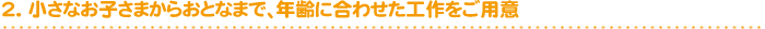 2. 小さなお子さまからおとなまで、年齢に合わせた工作をご用意