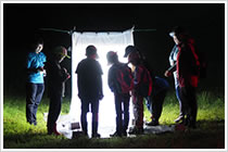 夜の森に仕掛けられた虫とりトラップを巡り、その仕組みや集まったさまざまな昆虫たちを紹介します。観察会の最後には特設エリアに入り、夜の甲虫たちの様子を観察しましょう。
