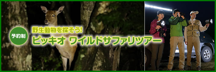専用のライトと車を使って、 日中はなかなか見ることができない動物たちの姿を探します。動物と目があった瞬間のドキドキする気持ちは、年齢を問わず、かけがえのない思い出になるはず