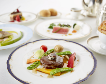 ホテルならではのフランス料理、人気の和洋中折衷料理など心をこめたシェフ自慢の料理の数々。さらに宴を盛り上げる模擬店料理ほかホテルならではのきめの細かさと季節感を盛り込み、ご招待されるお客さまにご満足いただけるお料理をご用意いたします。