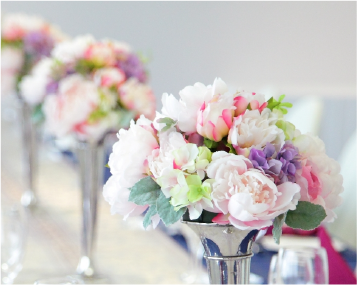 会場内やホテル玄関口に出される看板や飾花など、大切なパーティーが強く印象付けられるようにお手伝いさせていただきます。