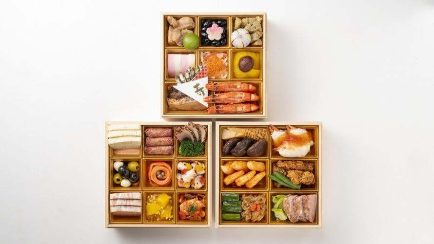 2026年のおせちは、一段から三段まで和・洋・中でご用意しております。三段重をお楽しみいただけます。