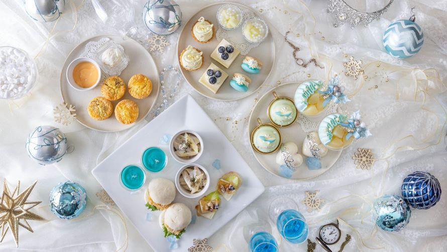 「プリンセス」をテーマに、ブルー×ホワイトの2色を基調とした、魔法に包まれるような夢のひとときを味わえるアフタヌーンティーセット。