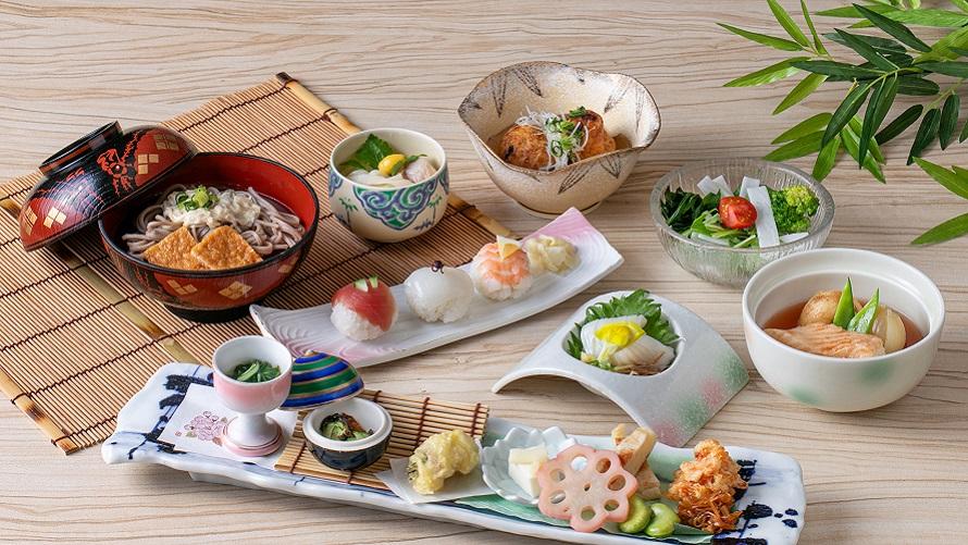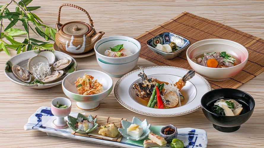 前菜九種盛り合わせをはじめ、食事や甘味まで、多彩なお料理をお楽しみいただけます。また食後には、甘味とご一緒に河越抹茶をご用意。お食事の余韻とともにゆったりとした時間をお楽しみください。