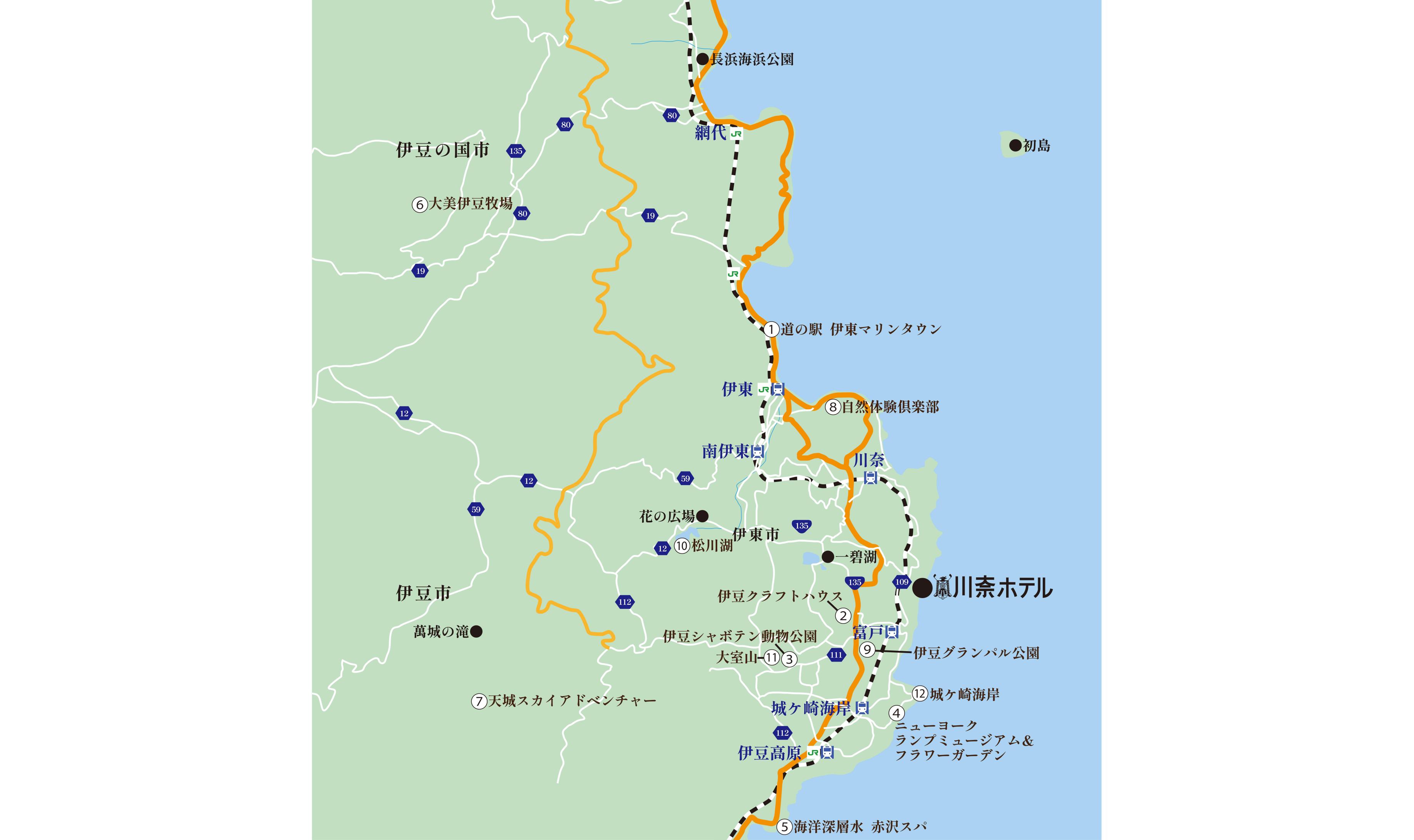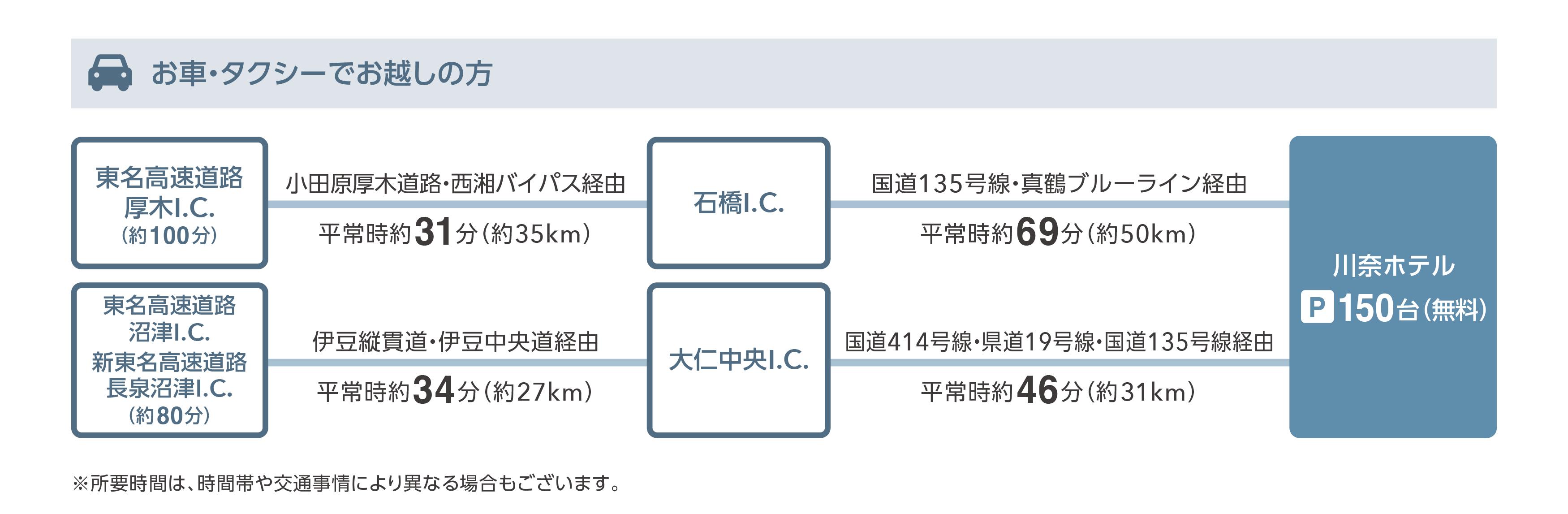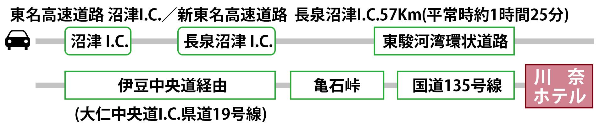 お問合せにつきましては川奈ホテル予約係 TEL:0557-45-1111 までご連絡をお願いいたします。 - お車・タクシーでお越しの場合は