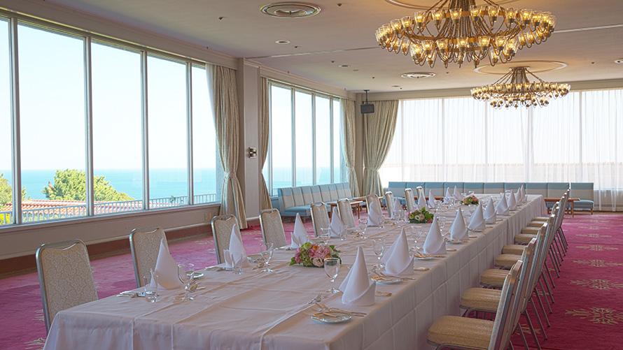 小会議や重要会議に最適な会場です。 ホテル庭園や相模湾に浮かぶ大島の眺望が、リゾートならではの和やかな雰囲気を演出いたします。